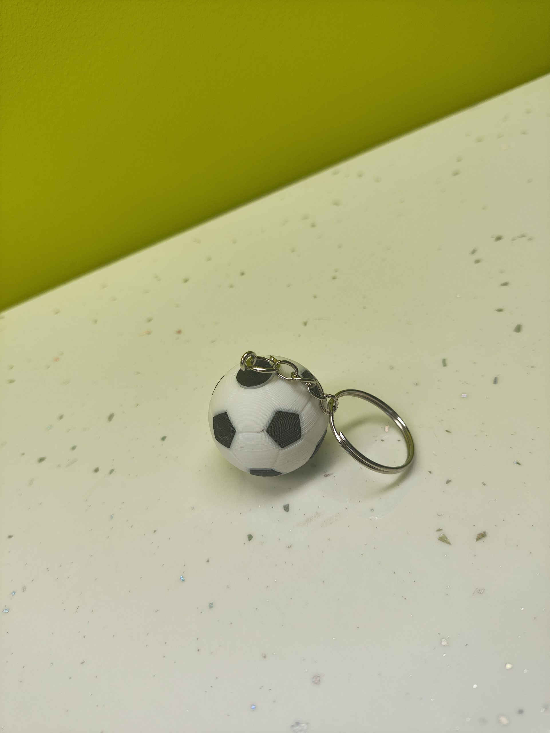Llavero de balón de fútbol impreso en 3D. Con 3 cm de diámetro, es un accesorio perfecto para cualquier aficionado. Ligero y resistente.